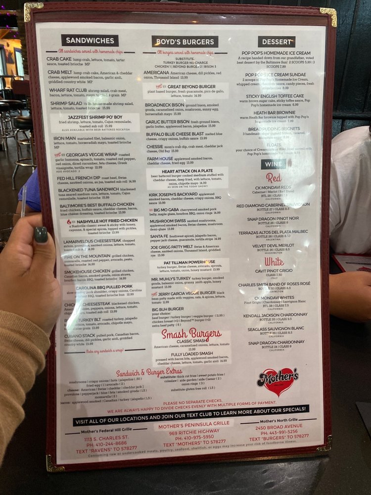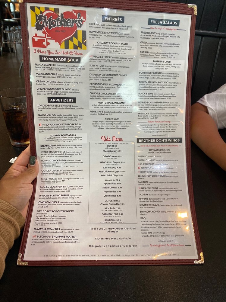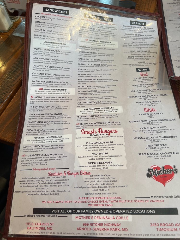 Welcome to Mother's Peninsula Grille, a lively dining spot nestled in Arnold, MD, where sports bar charm meets New American and seafood delights. This inviting eatery serves up mouthwatering dishes like the Double Crab Cake and Chipotle Chicken & Shrimp, showcasing local flavors with a modern twist.