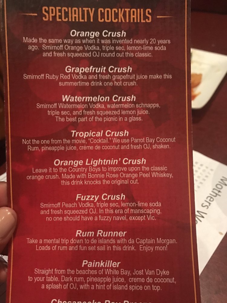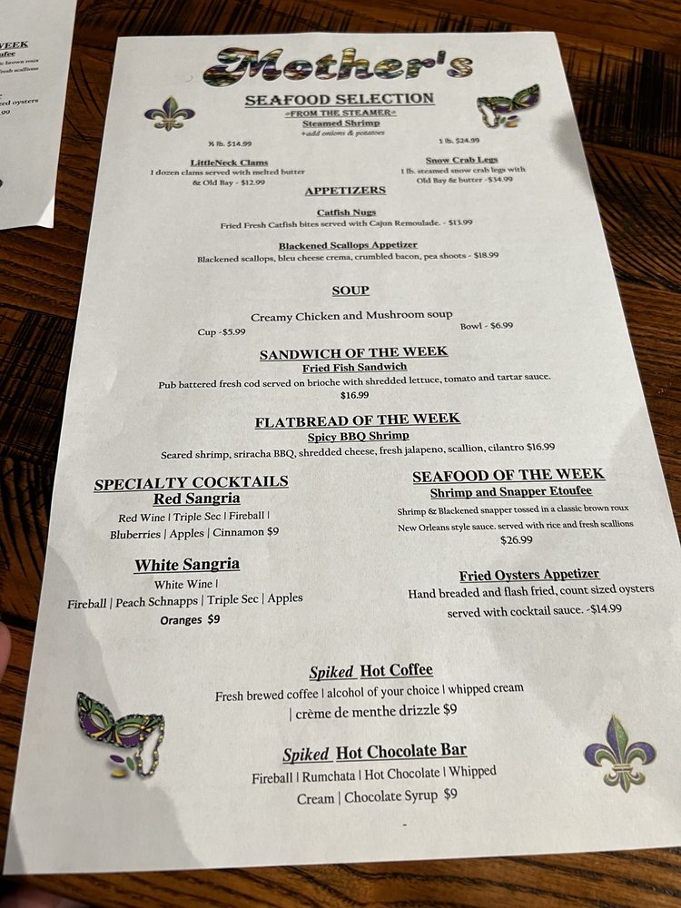 Mother's Peninsula Grille Menu